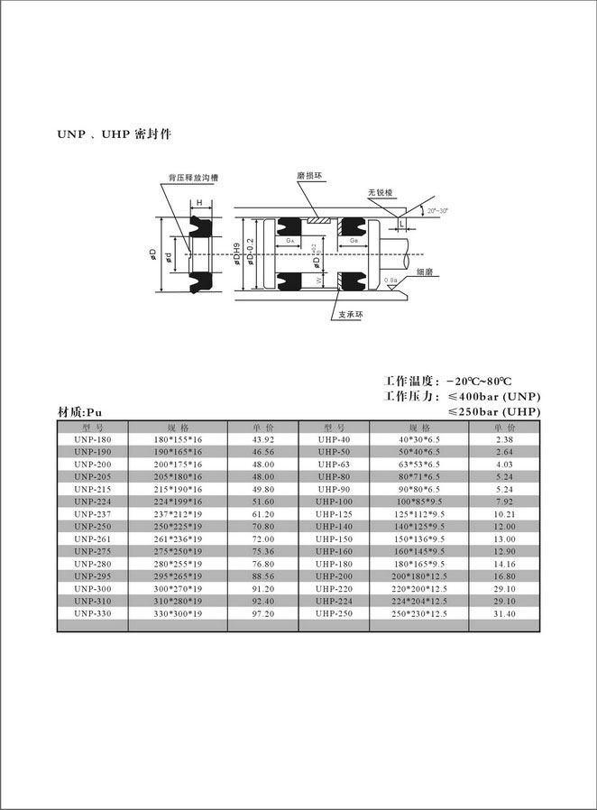 UNP,UHP活塞專用密封圈